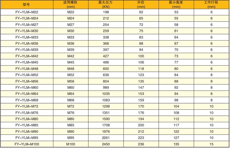 FY-YLM型液壓螺栓拉伸器技術(shù)參數(shù):