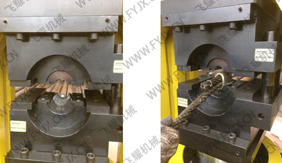 第二步 裝好同型號(hào)的模具,將穿好的鋼絲繩放入模具槽內(nèi)